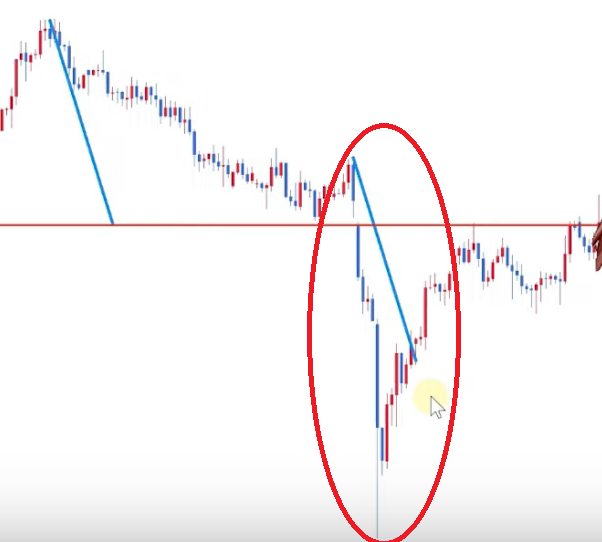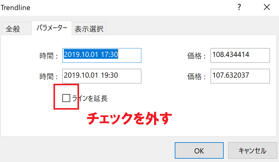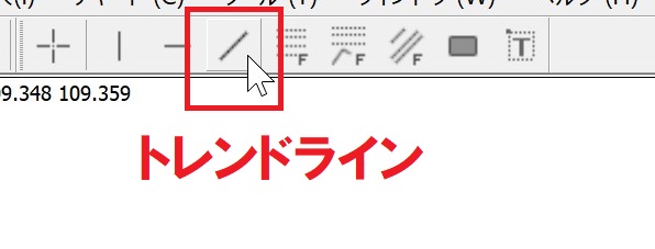 ちなみに、ここでは、MT4に入っている「トレンドライン」という機能を使っています。