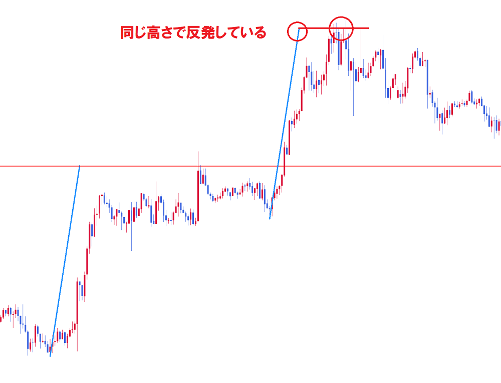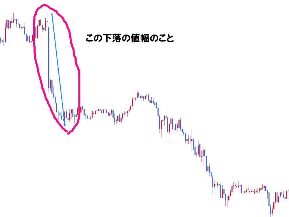 そうすると、ちょうど同じ長さで下落が止まって、反発しているのを確認できます。