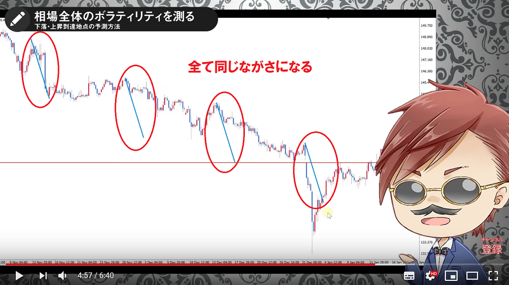 このように、相場は「同じくらいの値幅(ボラティリティ)」でトレンドが継続していくことが多いのです。