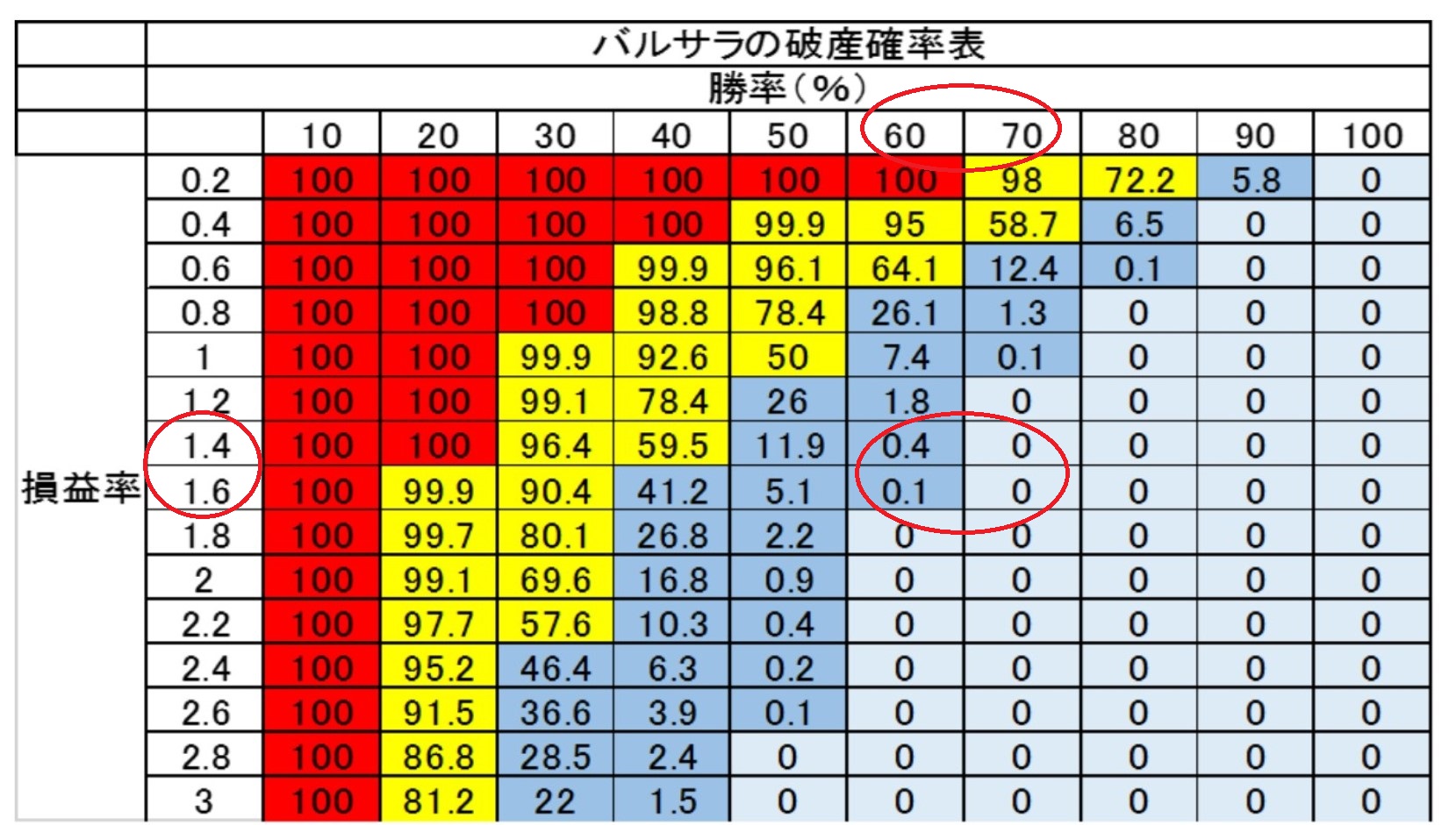 これは、バルサラの破産確率表です。