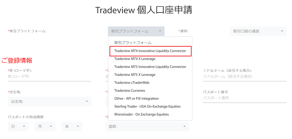 このNDD方式の口座は、「MT4 Inovative Liquidity Connector」を選択することで口座開設できます。