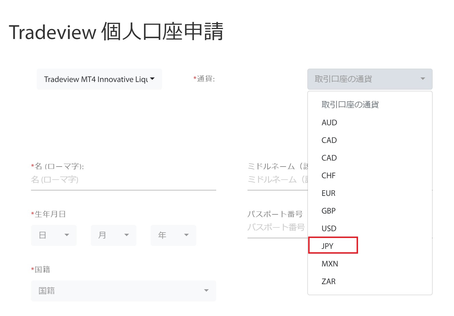 日本円で入金や出金を行いますので、こちらは「JPY」を選択しましょう。