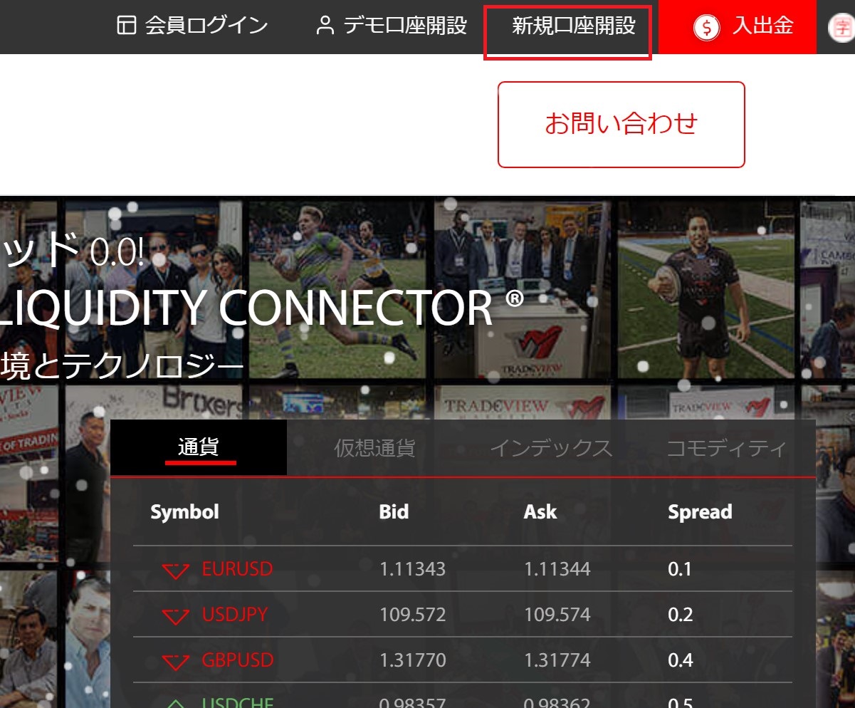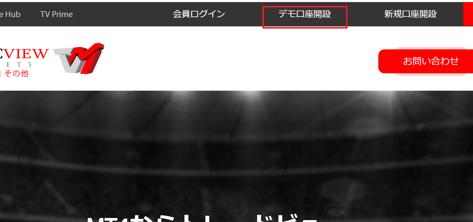 まず、Tradeviewの公式サイトを開き、トップメニューに表示されている「デモ口座開設」を選択。