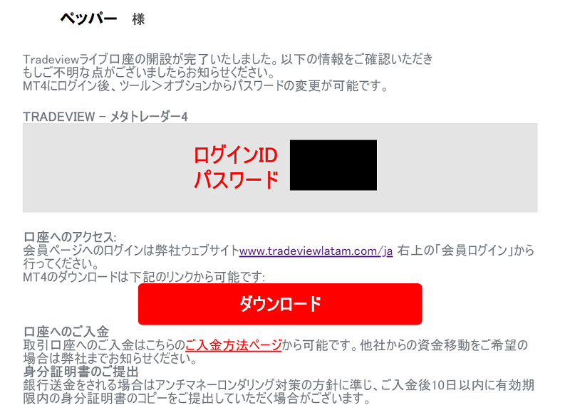 本文を開くと、ログインIDとパスワードが記載されているので、メモなどを取って忘れないようにしましょう。